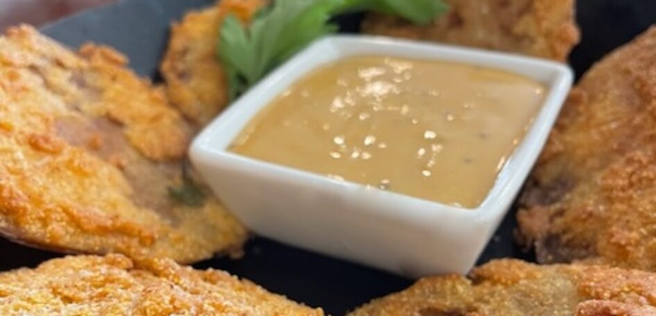 Kevin’s Fried Green Tomatoes with Hot Sweet Mustard Vinaigrette