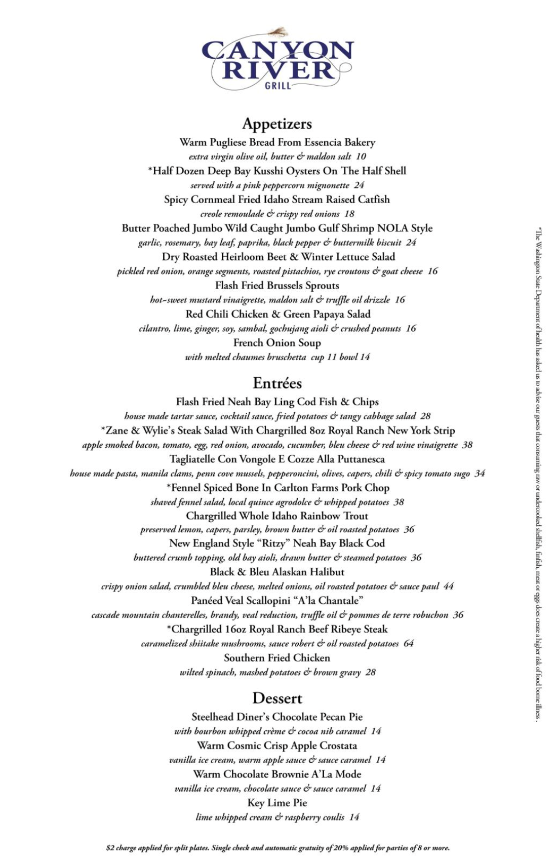 While rooted in the rich bounty of the Northwest, our menu blends seamlessly with other influences and traditions from around the country and world. Ours is a rotating menu, based on seasonal availability of fresh ingredients and, of course, the chef’s inspiration!