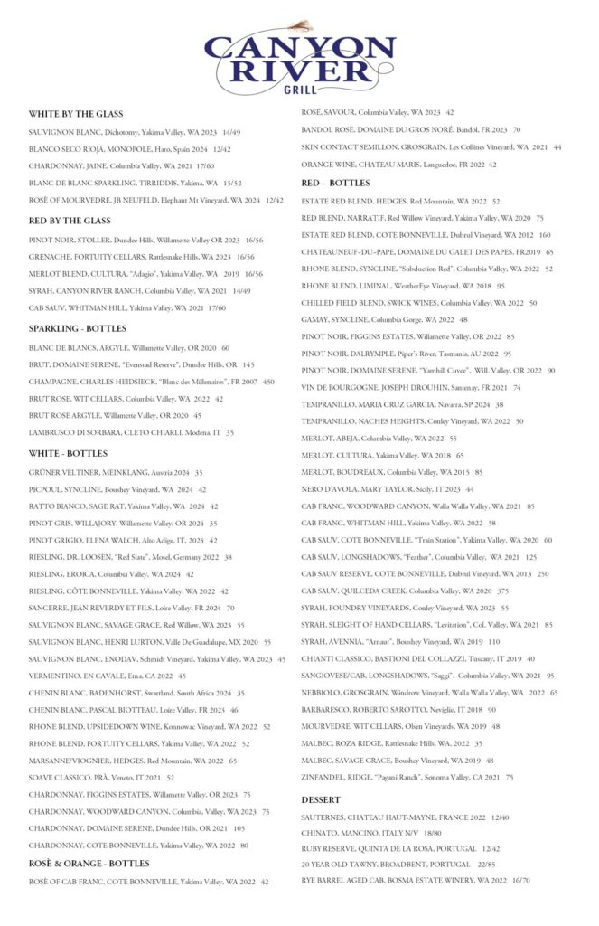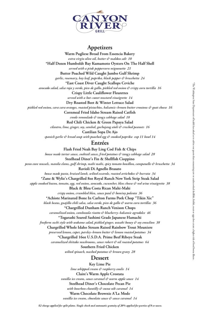Canyon River Grill Menu