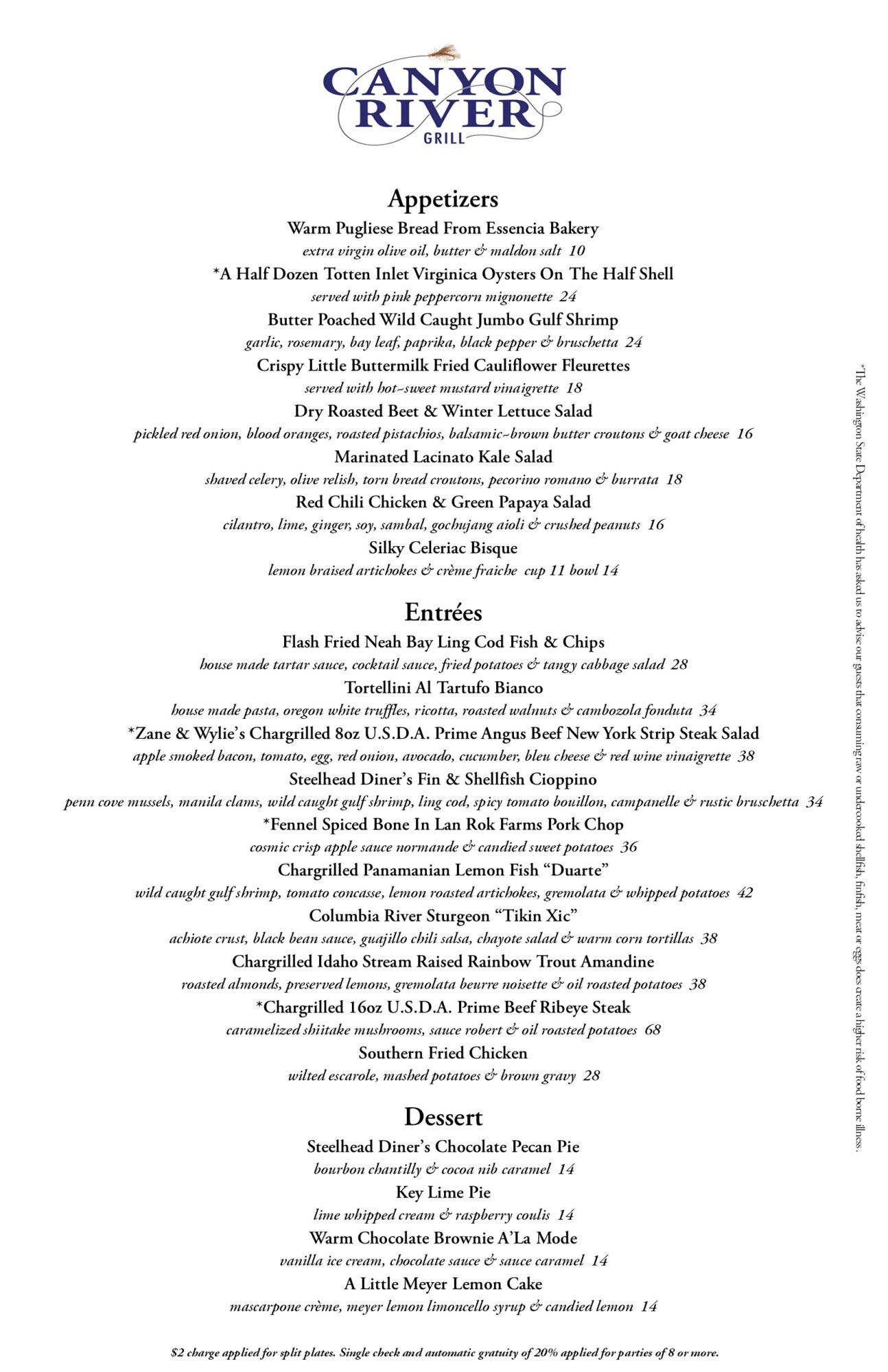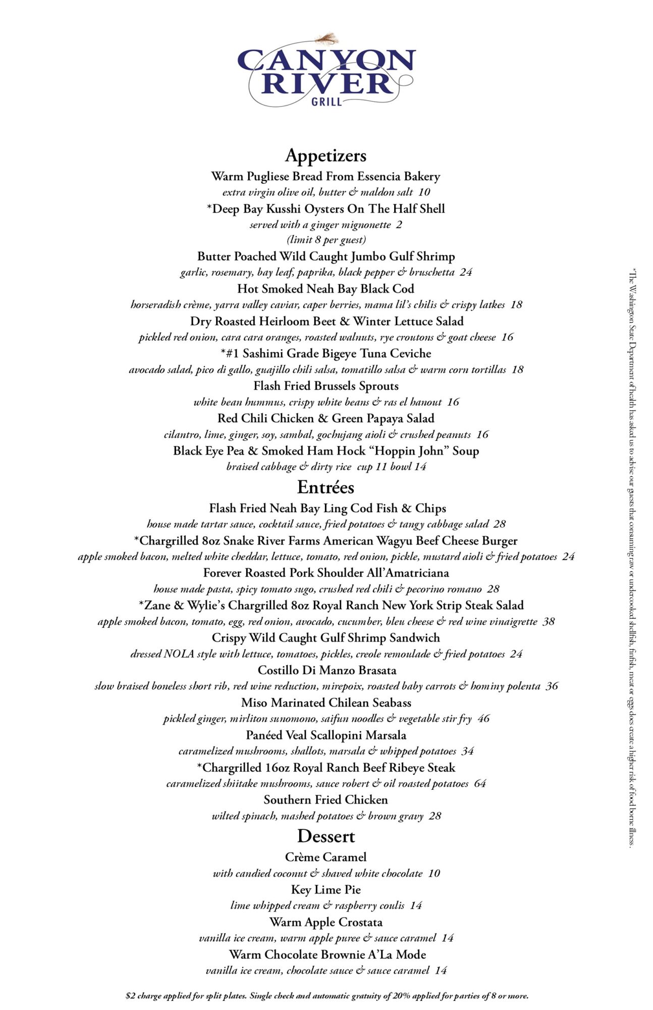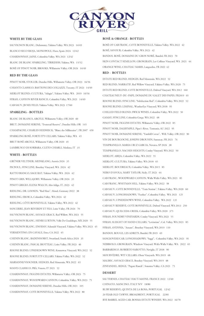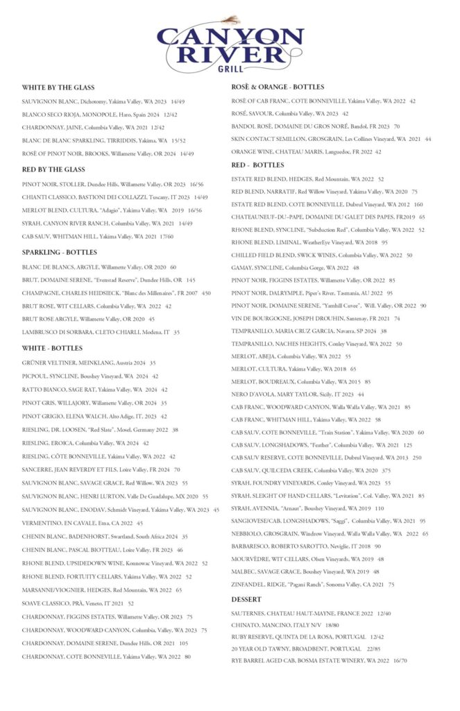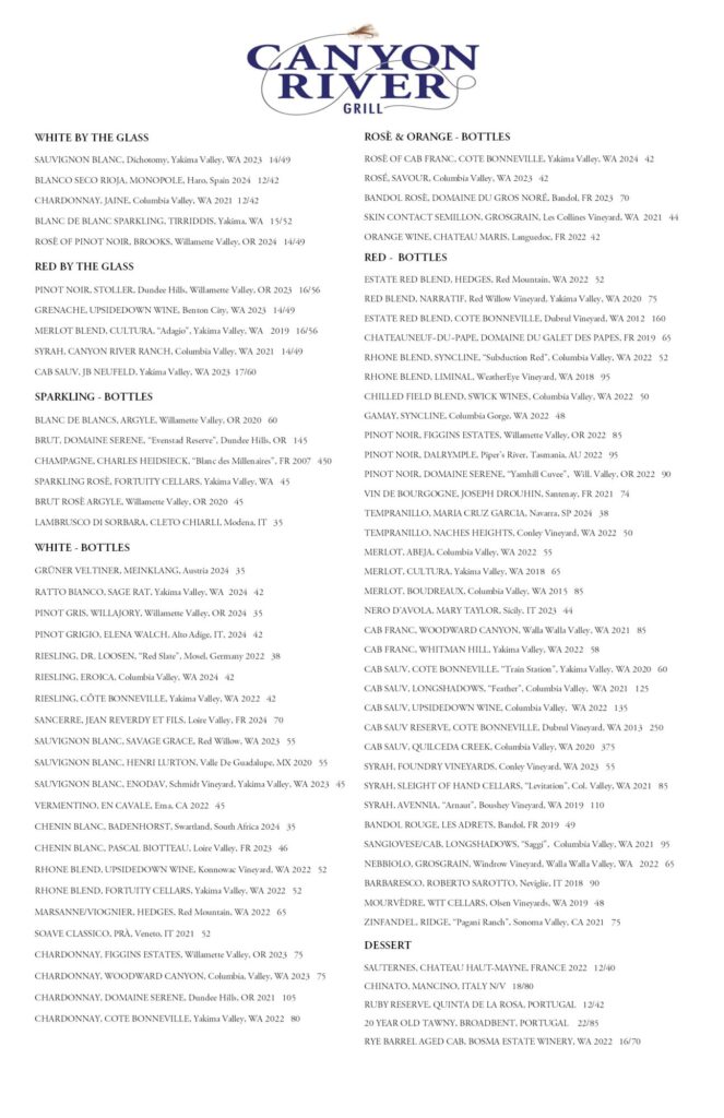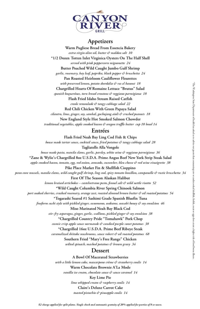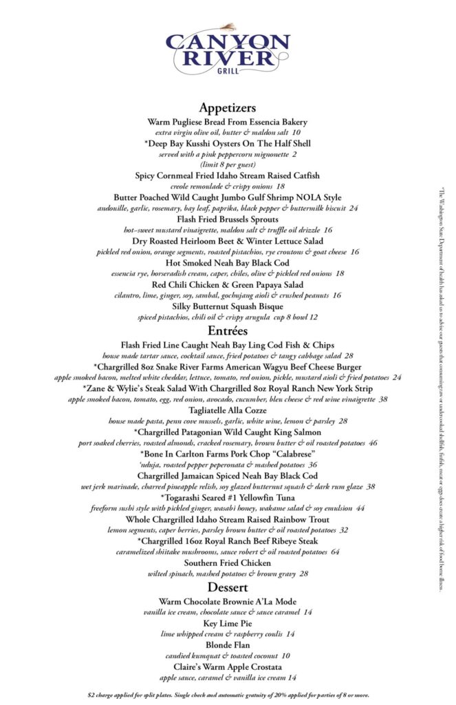 Canyon River Grill Menu