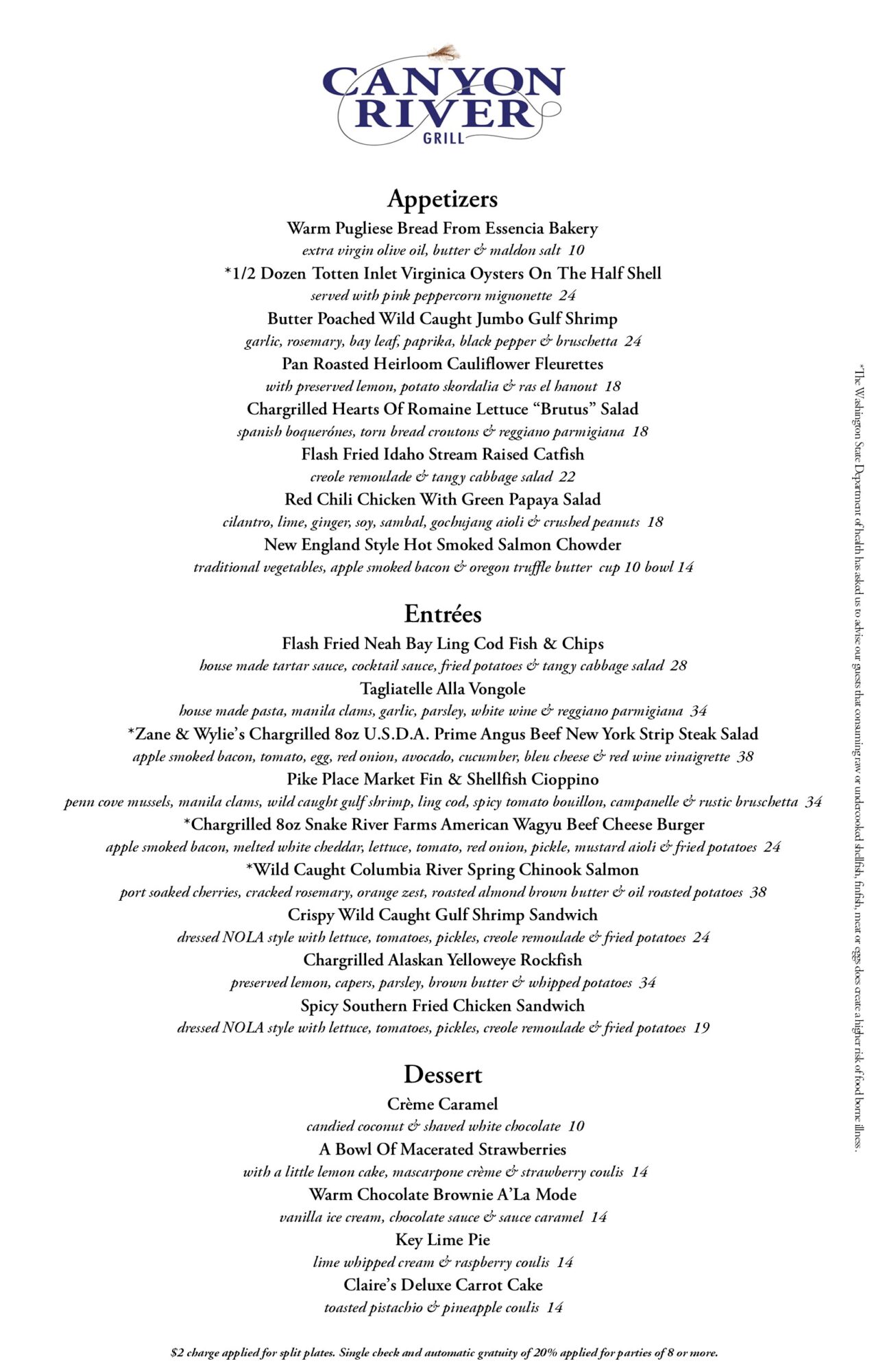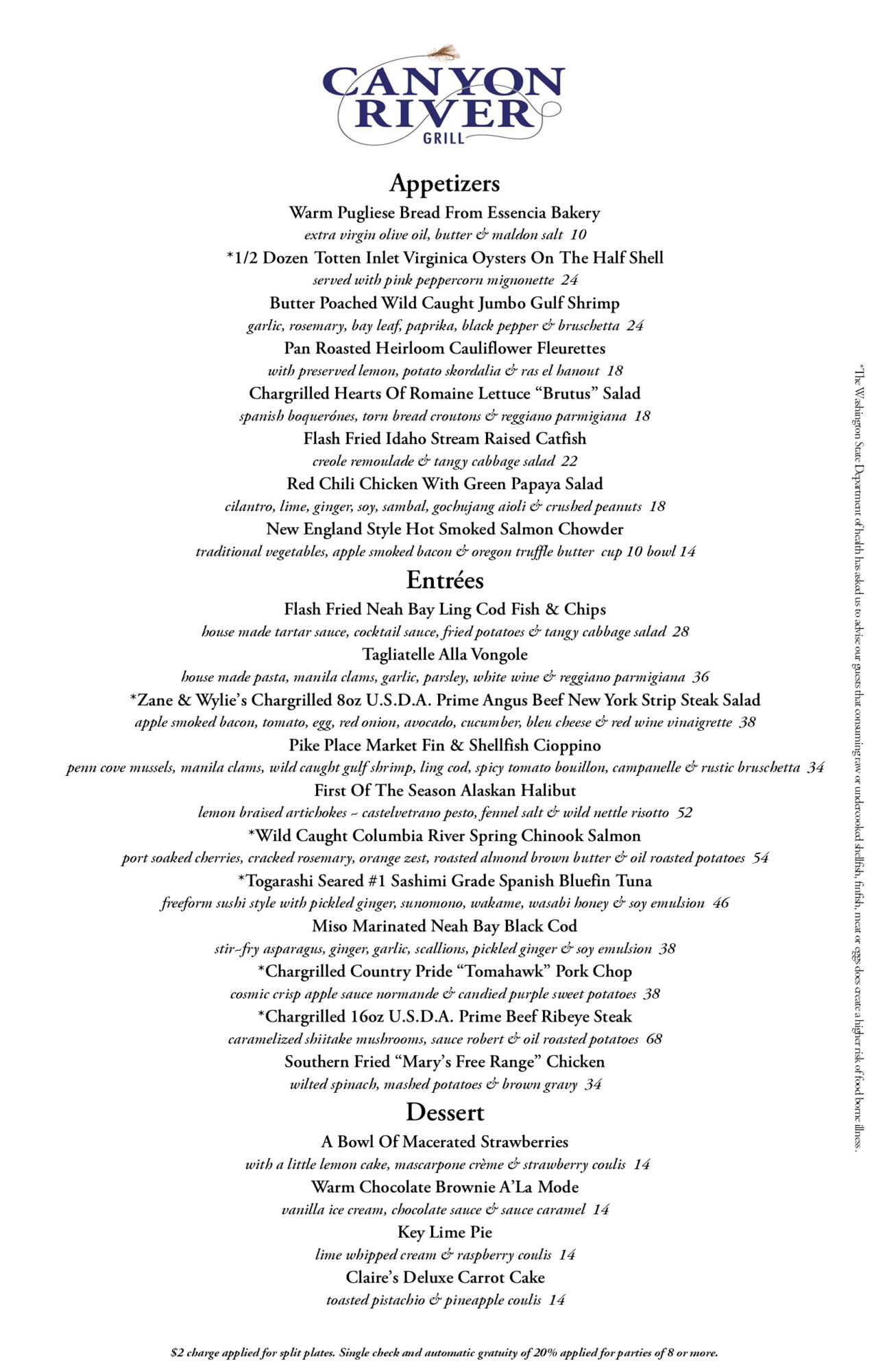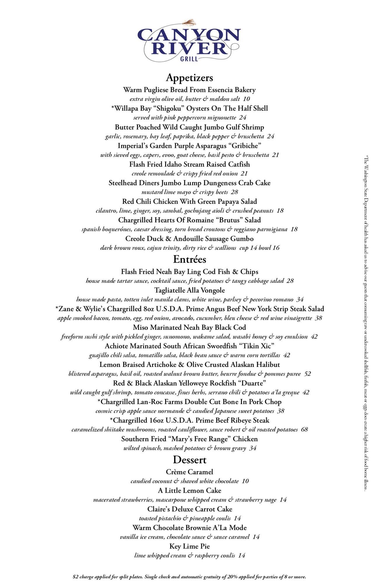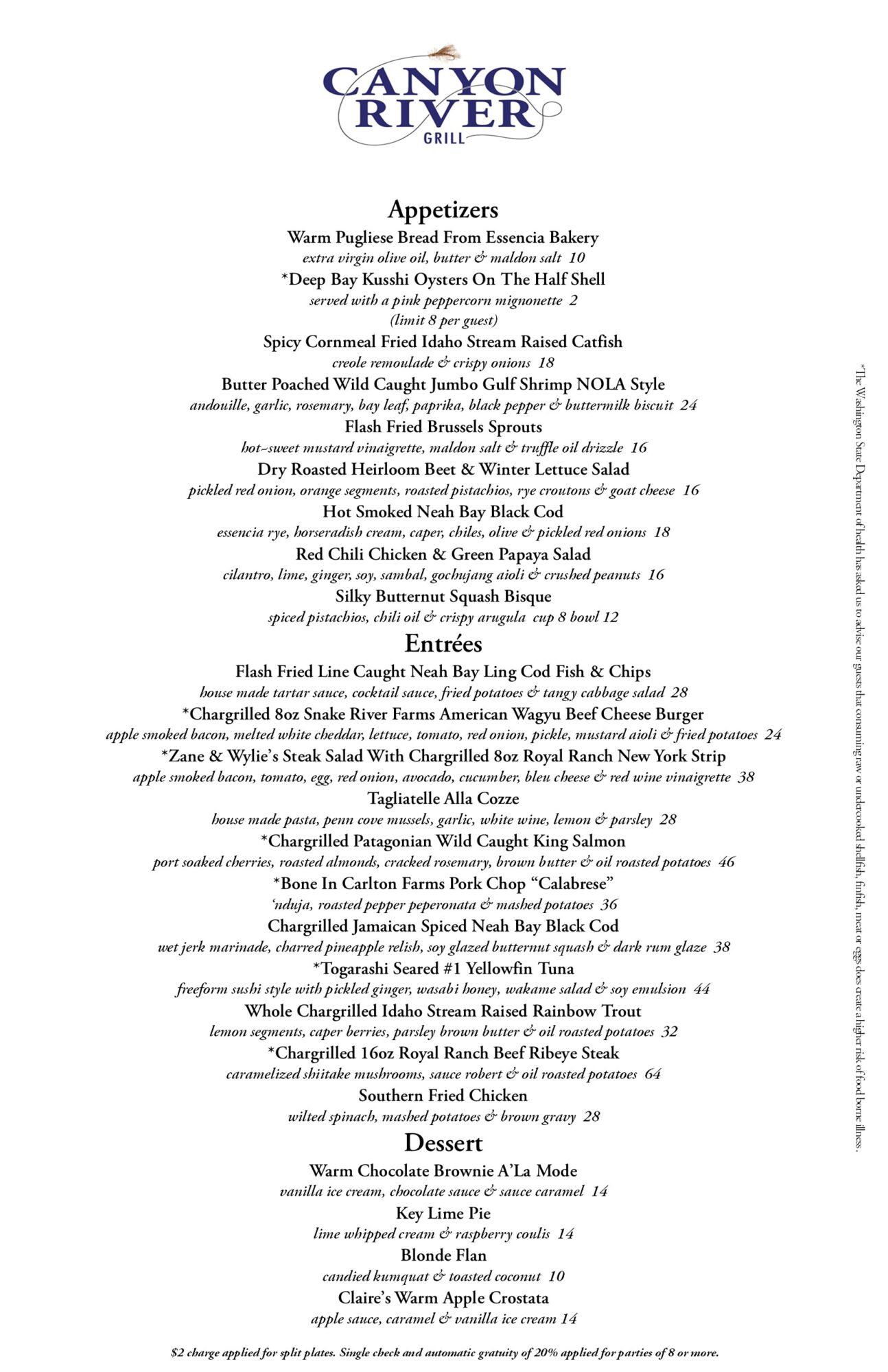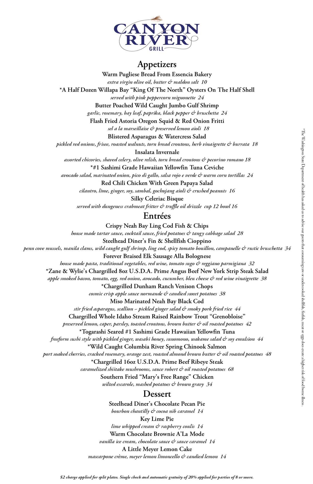 Canyon River Grill Menu