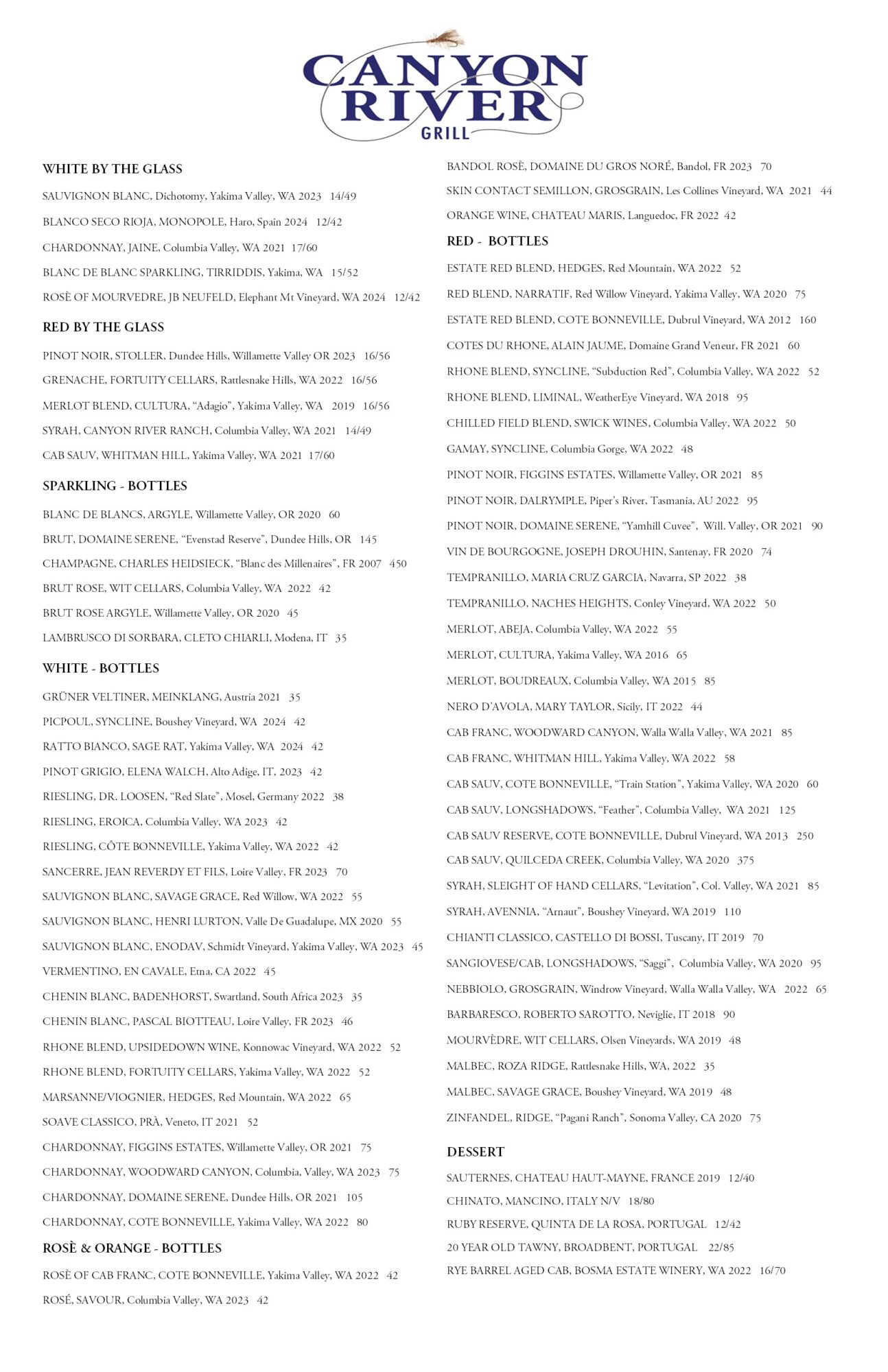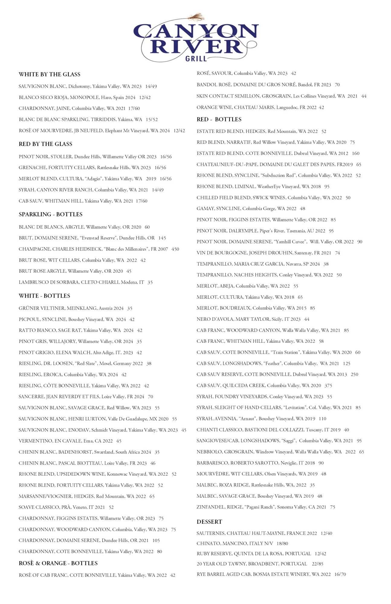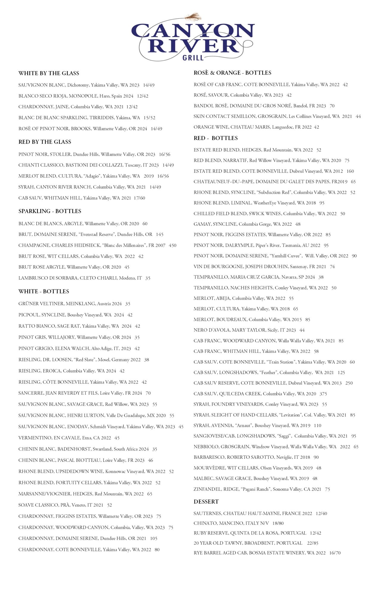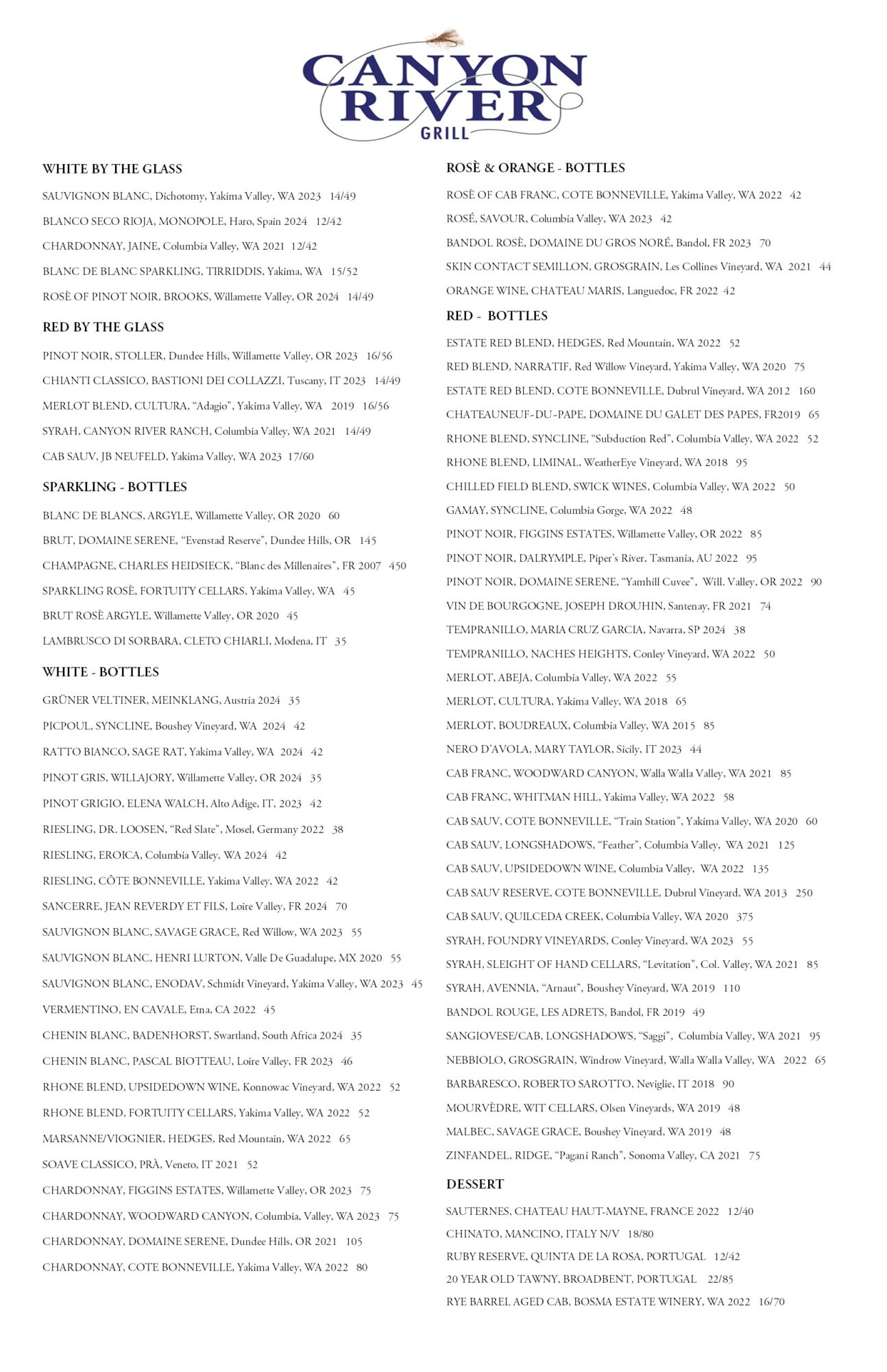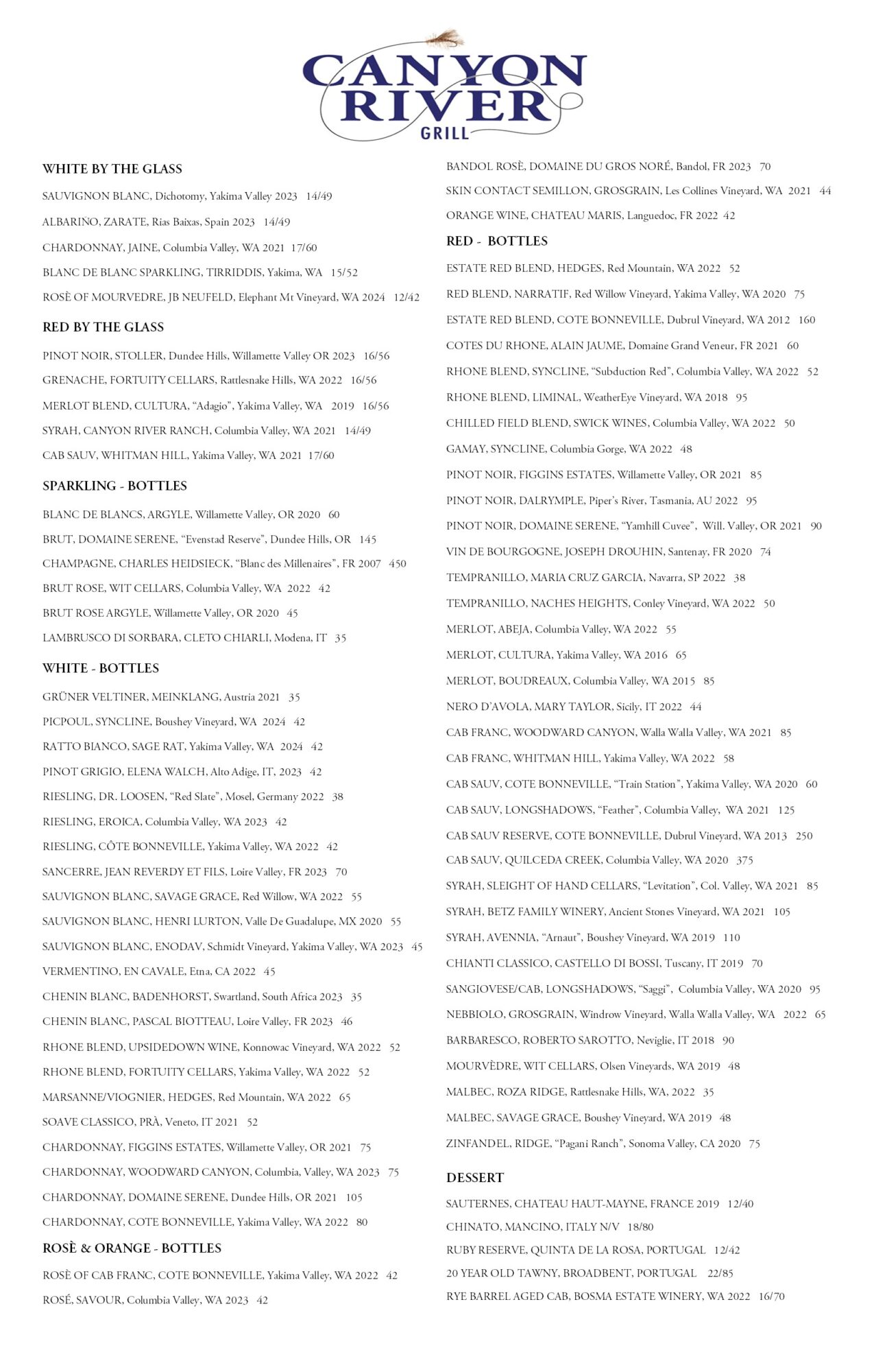 Canyon River Grill Menu