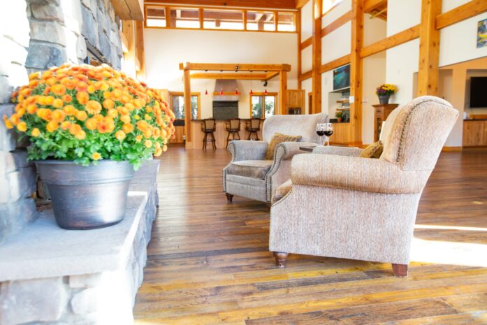 The lodge can accommodate up to 60 guests for meetings, private events, and banquet-style dining. Seating configurations vary based on your event needs: